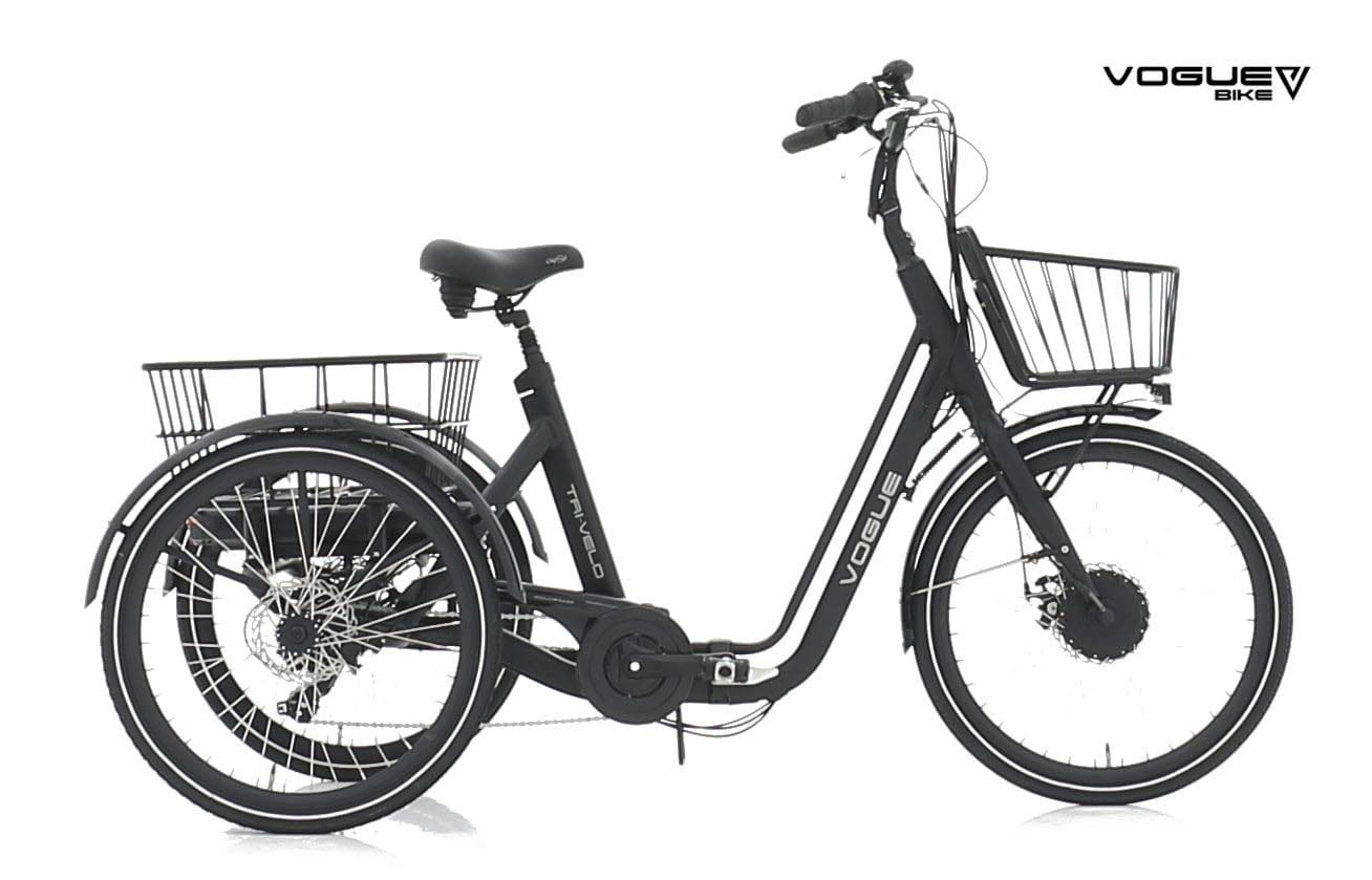 Električno mestno kolo tricikel Vogue TriVelo je mestno kolo, namenjeno invalidom in ljudem v zrelejših letih, ki zaradi zdravstvenih razlogov ne vozijo navadnega kolesa. Je odlično kolo, s katerim se boste pripeljali vsepovsod v mestu, kamor si boste začeleli. Tako spredaj kot zadaj ima nameščeno košaro, v kateri boste s seboj lahko peljali marsikaj. Kolo je nadvse praktično.